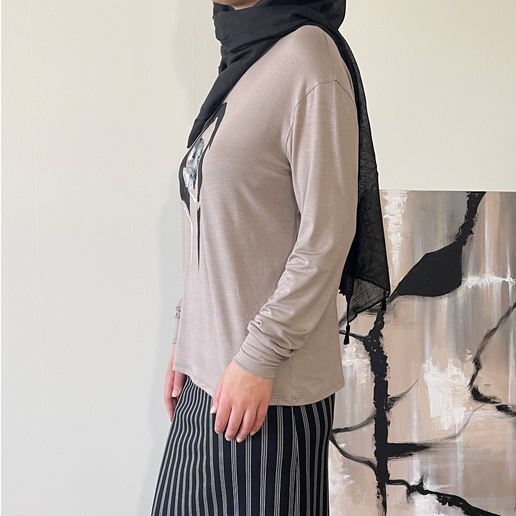 The Essential Long Sleeve Tee has art that is designed and hand painted by Hafsa.