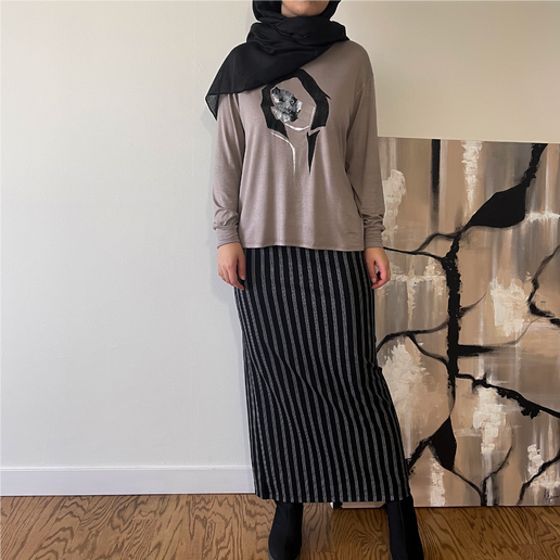 This item is made with deadstock soft jersey so quantities are limited! Each item at Fashion By Hafsa is hand painted so each piece is slightly different!