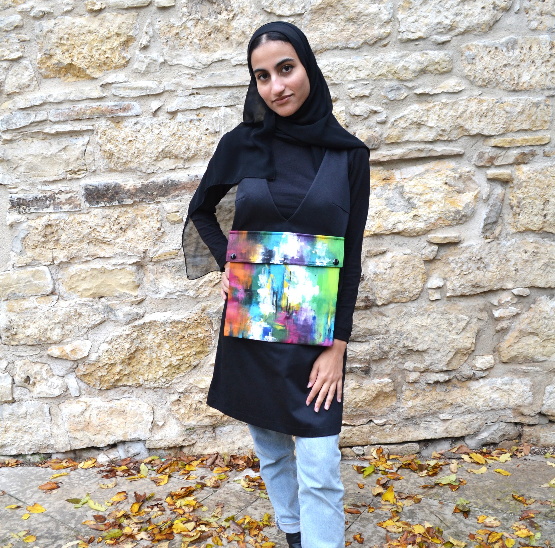 This tunic has a looser fit which is flattering on everyone.. Wear it casually with jeans or dress it up with a skirt and heels.