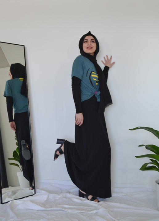 This is a beautiful fun tee where the print is designed and hand painted by Hafsa.